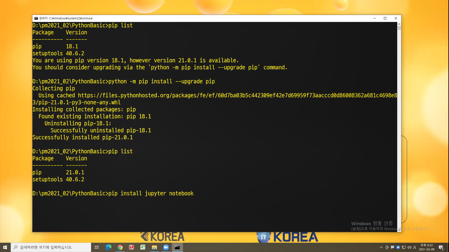 # shift + Enter => νλ‘κ·Έλ¨ μ€ν, νλ‘κ·Έλ¨μ μ€νν λ€μ μ