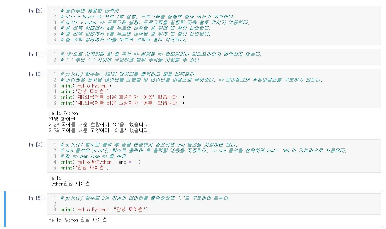 μ print() ν¨μλ‘ μΆλ ₯ν ν μΆλ ₯ν λ΄μ©μ μ§μ νλ€. => end μ΅μ